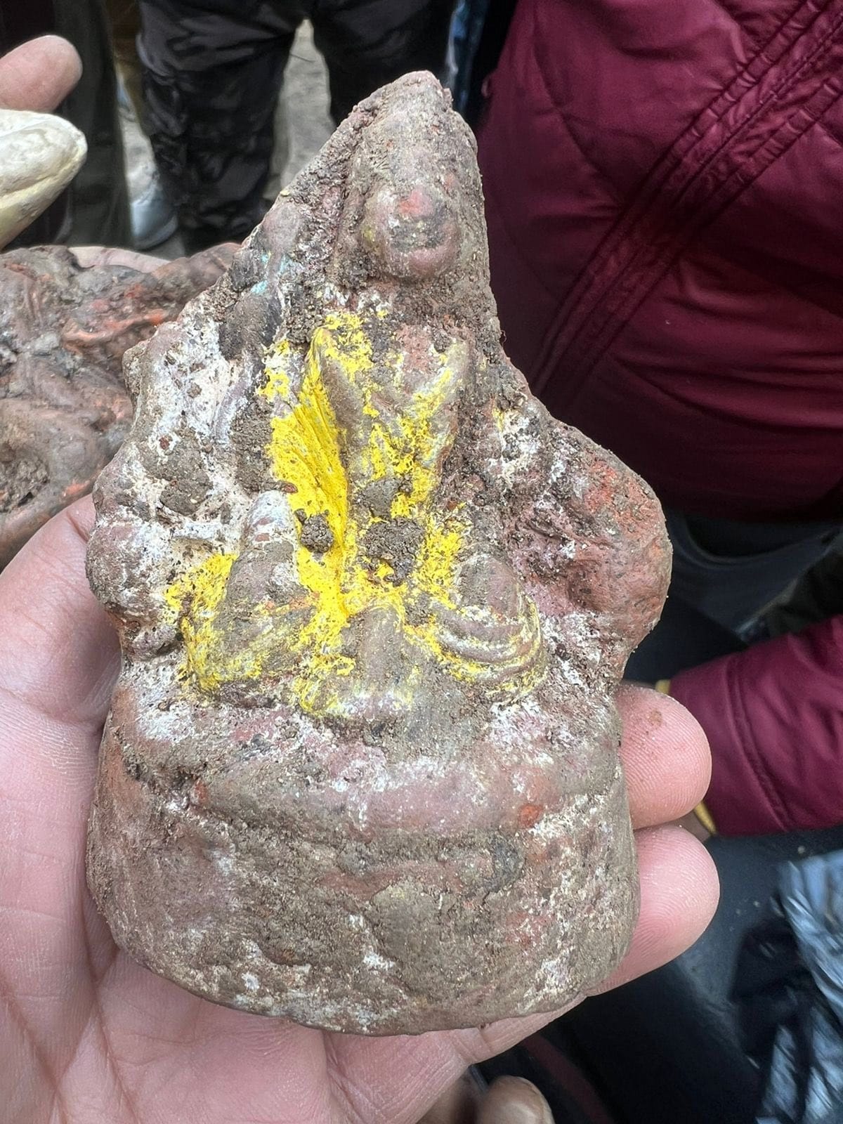 इस बीच कुएं की खुदाई में तीन खंडित प्रतिमाएं निकली हैं। पुलिस के मुताबिक यह प्रतिमाएं गणेश जी, कार्तिकेय और संभतः माता पार्वती की प्रतिमाएं हैं, जिन्हें जांच के लिए भेजा जाएगा।