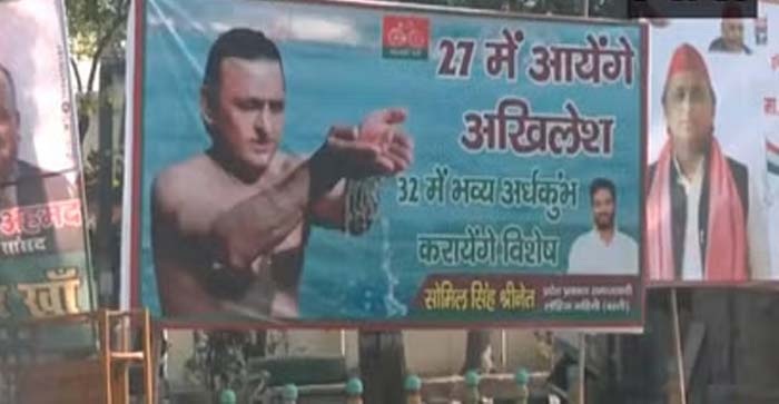 सपा कार्यालय के बाहर लगे पोस्टर में लिखा गया है कि ’27 में अखिलेश आएंगे, 32 में भव्य अर्धकुंभ कराएंगे विशेष’. मीडिया रिपोर्ट के अनुसार यह पोस्टर सपा लोहिया वाहिनी के प्रदेश प्रवक्ता सोमिल सिंह श्रीनेत की तरफ से लगाया गया है.